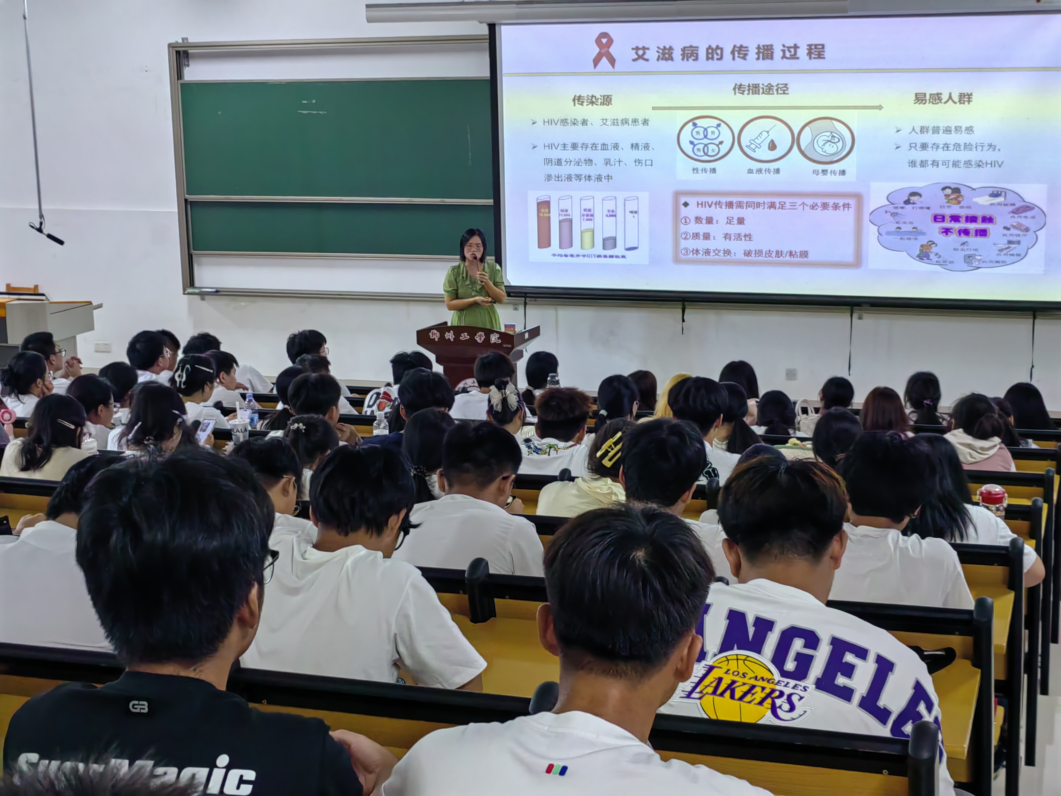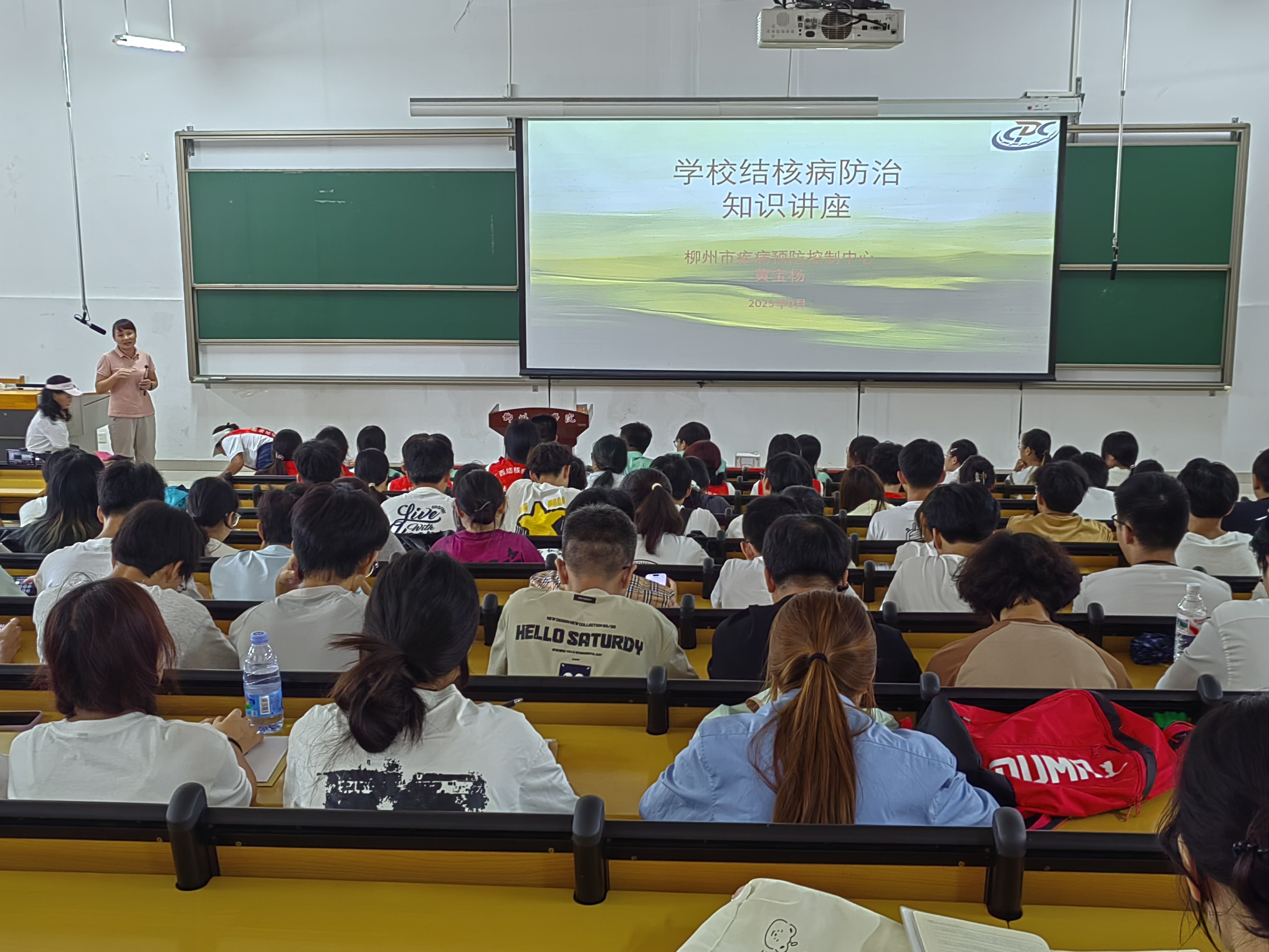 9月11日下午,鱼峰区疾控中心主任医师孔继连、市疾控中心主任医师黄宝杨分别开展疾病防控专题授课。孔继连以“科学避孕 防艾知艾”为题,从艾滋病定义、传播途径、性行为与性决定、意外怀孕预防及防艾措施五方面讲解,强调“洁身自好、正确使用安全套”的重要性,呼吁消除对艾滋病患者的歧视。黄宝杨则以 “学校结核病防治”为主题,围绕结核病的定义、症状、传播途径、检查方法、分类、治疗、预防及消毒方法八大内容科普,讲座尾声设置有奖问答环节,新生踊跃参与,在互动中巩固知识,现场气氛热烈。