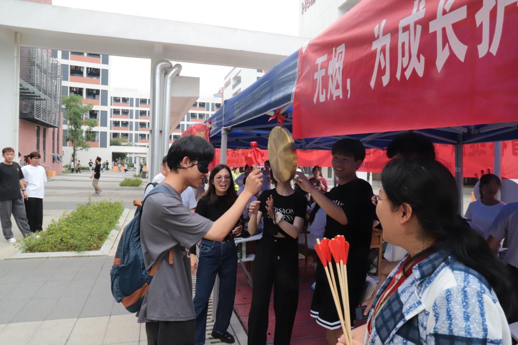 当天,由经济管理学院心理工作站承办的心理游园活动在南校区和北校区也同步开展,该活动通过体验性小游戏投壶和蒙眼敲锣让同学们放松身心,在欢声笑语中体验心理学的魅力。活动吸引了众多同学、老师前来参与,校园里洋溢着欢乐的氛围。