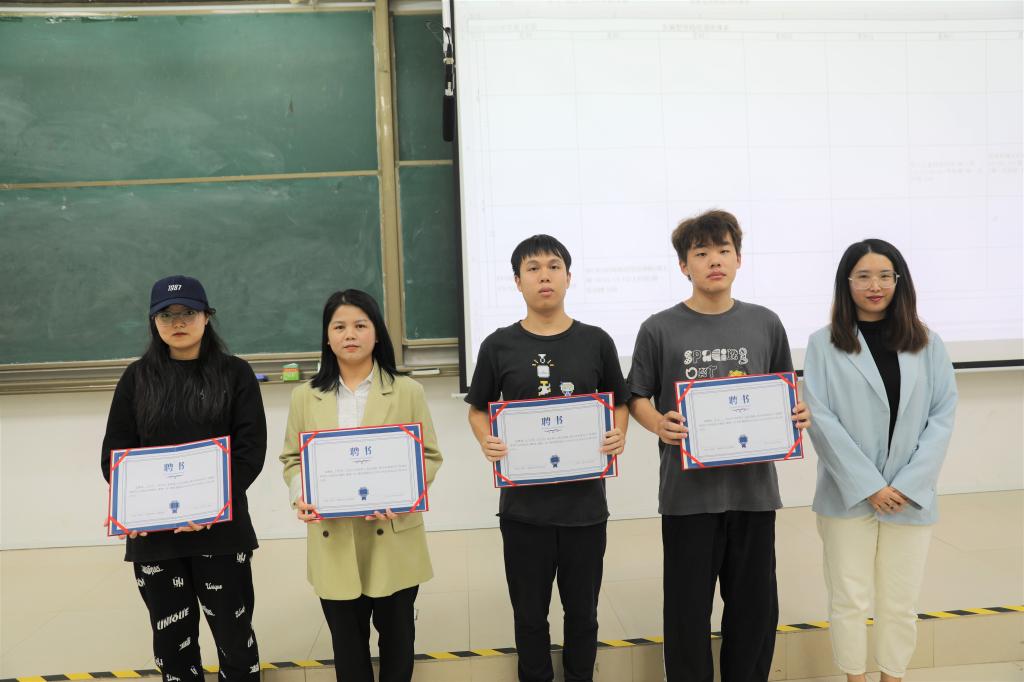 随后信科学院黄慧欣老师上台讲话,她向同学们介绍了有关培训资助项目的相关内容以及奖励机制,鼓励同学们积极参与。同时给培训班的老师颁发聘书。