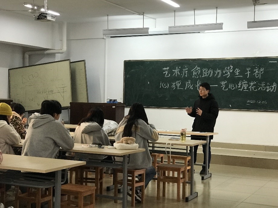 为提升艺术与设计系学生干部综合素质,释放工作压力,提升团队的凝聚力、战斗力。12月6日,艺术与设计系开展了“艺术疗愈助力学生干部心理成长”表达性艺术治疗手工创作活动,本次活动的指导教师为国家二级心理咨询师郭部洲老师,“艺心”工作室和艺术与设计系全体青马工程培训学员参加了本次活动。
