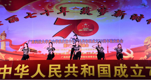 9月27日晚,广西科技大学鹿山学院庆祝中华人民共和国成立70周年联欢会暨2019年迎新晚会在鹿山广场隆重举行,我院3000余名师生参加活动。