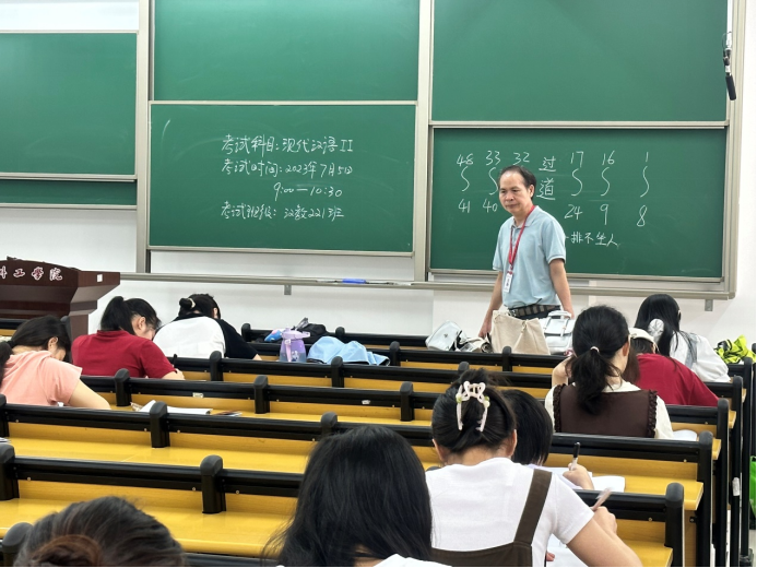 为进一步强化期末考试组织管理和考风考纪建设,维护考场秩序和考试纪律,2023年7月,语言文化与国际教育学院领导组成巡考组,开展2022-2023学年第二学期期末考试常态化巡视工作。学院院长黄锦华、副院长董月琳和副书记邓先超带队,深入各个考场,对考试组织、考场纪律和监考老师履职等情况进行巡查。