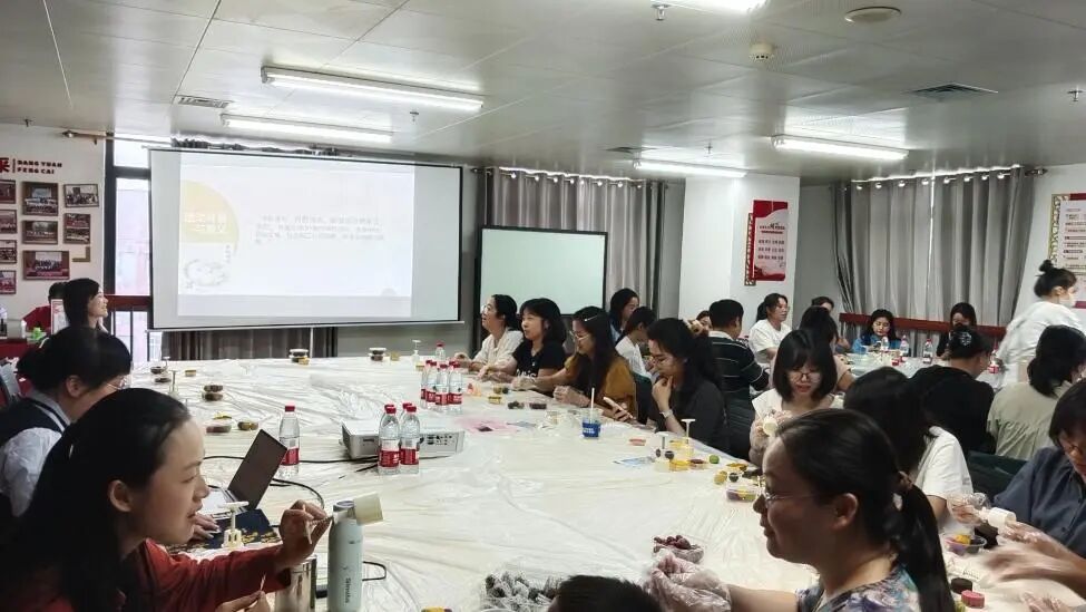 活动最热闹当属 “巧手制月饼,共叙中秋情” 环节。在专业烘焙师傅的细致指导下,老师们从揉面、包馅到压模,一步步学习桃山皮月饼的制作技巧。大家兴致盎然,即便是初次尝试也能迅速上手,在轻松愉悦的互动中交流手艺、分享快乐,将节日的祝福与暖意一同“包”进香甜的月饼中。