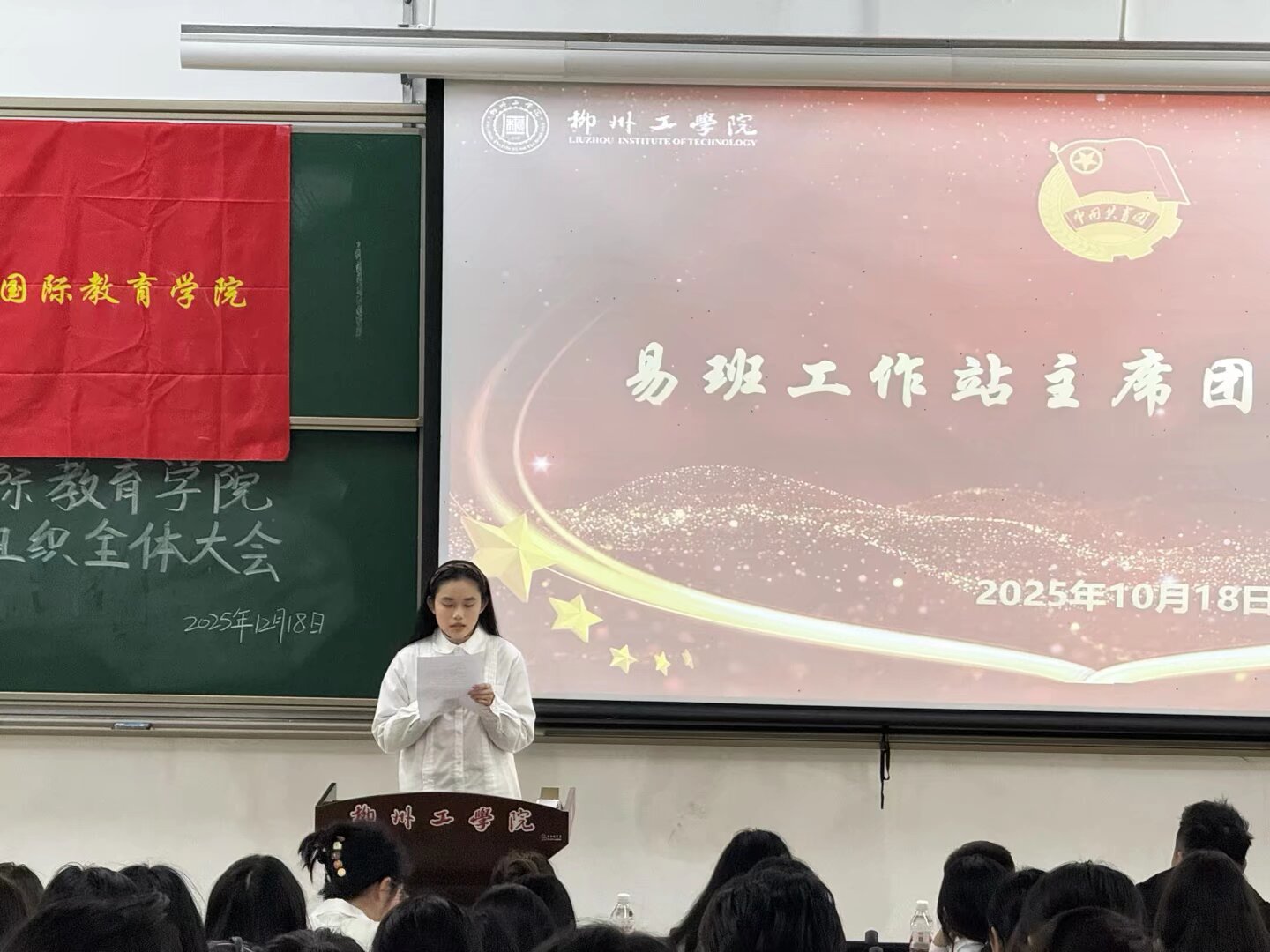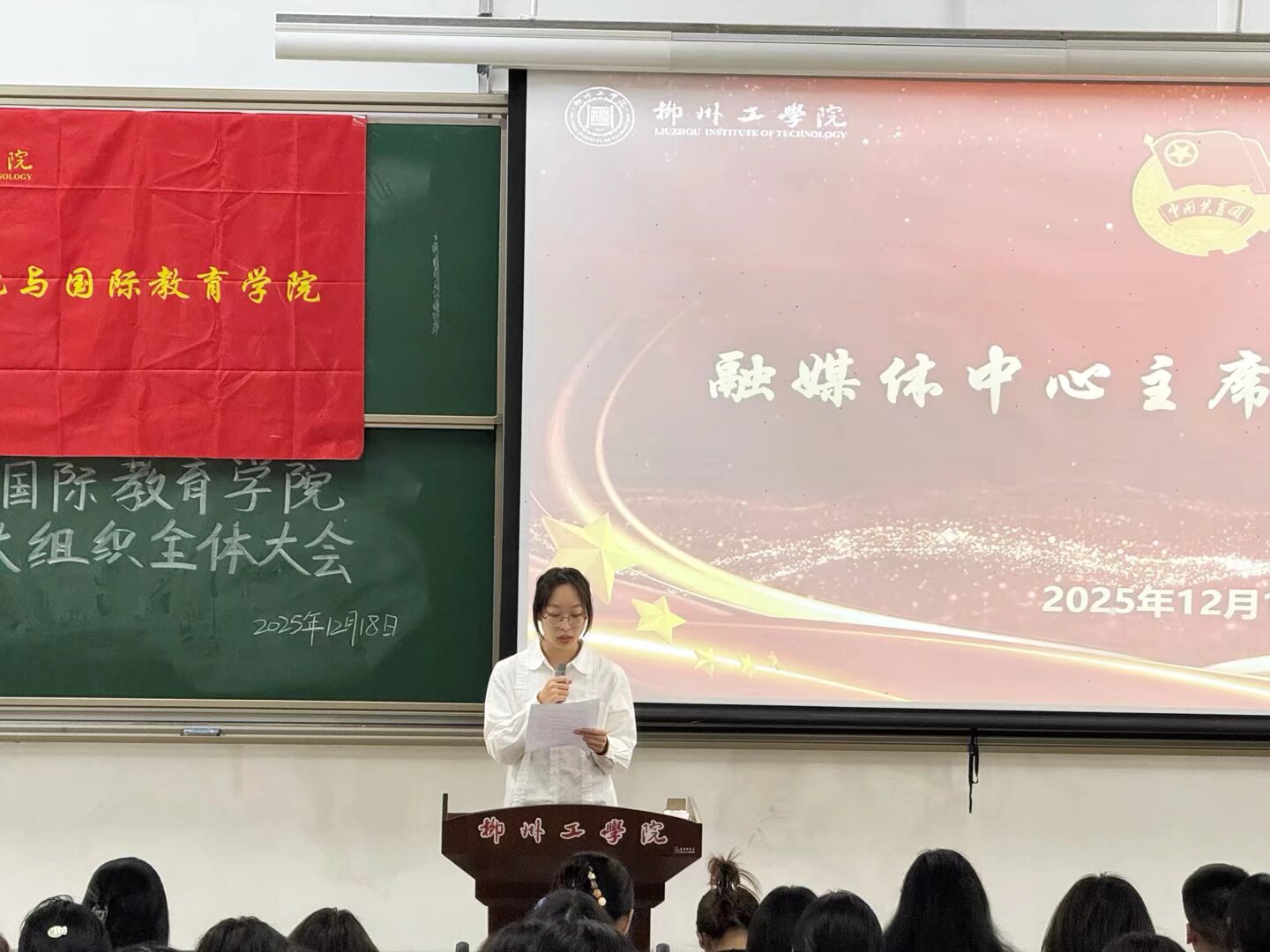 为总结本学期工作、规划未来发展,进一步凝聚组织合力,12月18日晚,语言文化与国际教育学院2025年秋季学期学生组织全体大会在北校区T1-101教室召开。学院党总支书记杨新建、团委指导老师赵维驹、各年级辅导员及五大学生组织全体成员共同参会。