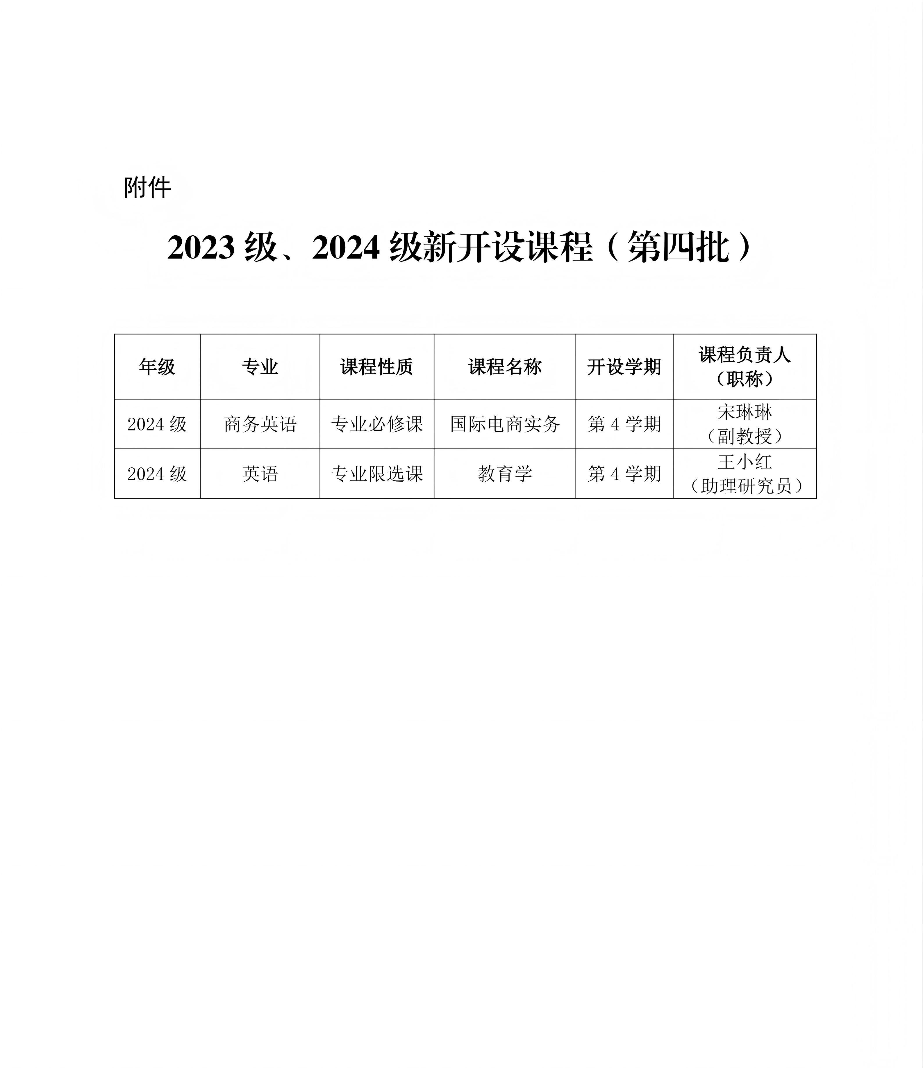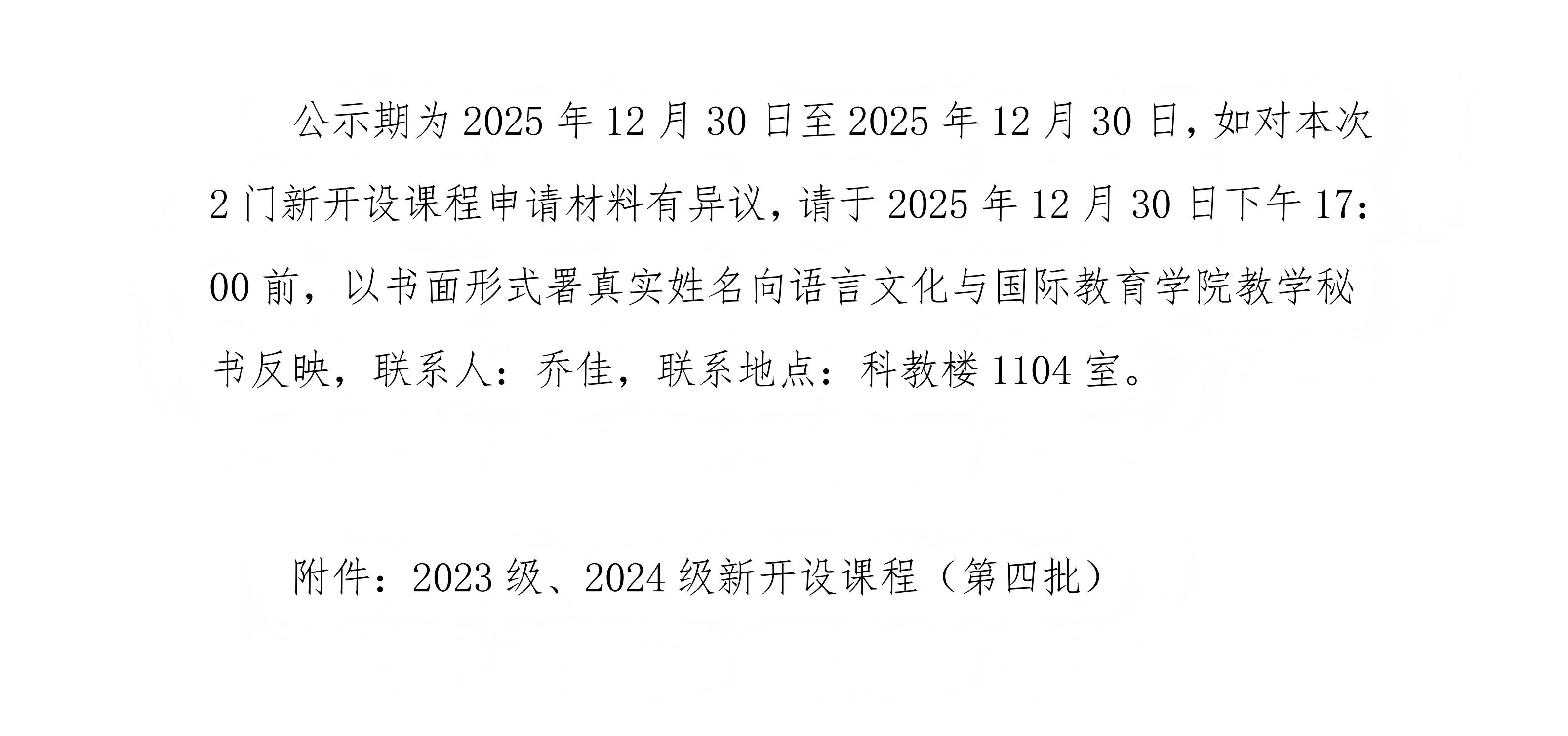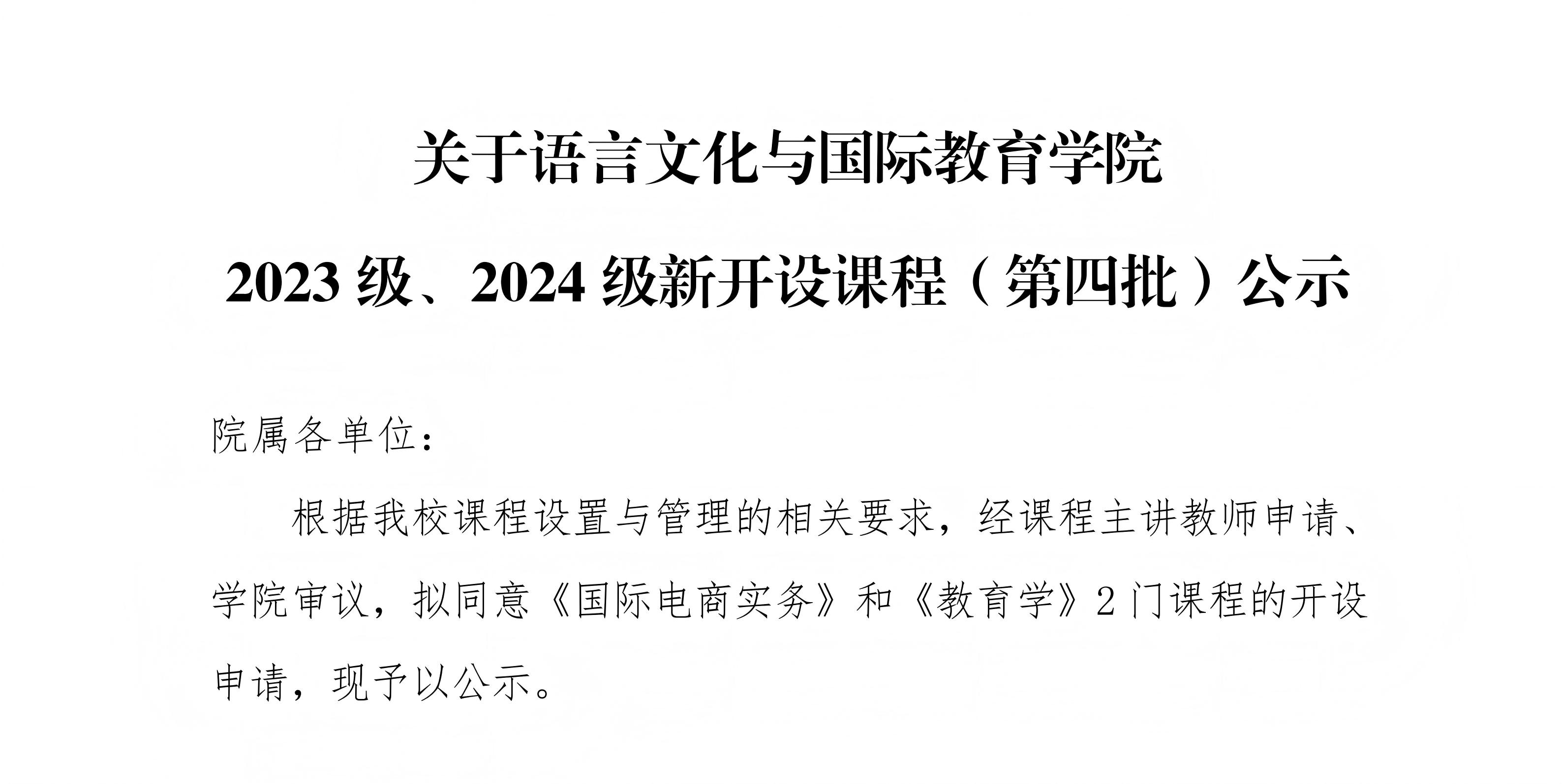 关于语言文化与国际教育学院2023级、2024级新开设课程(第四批)公示