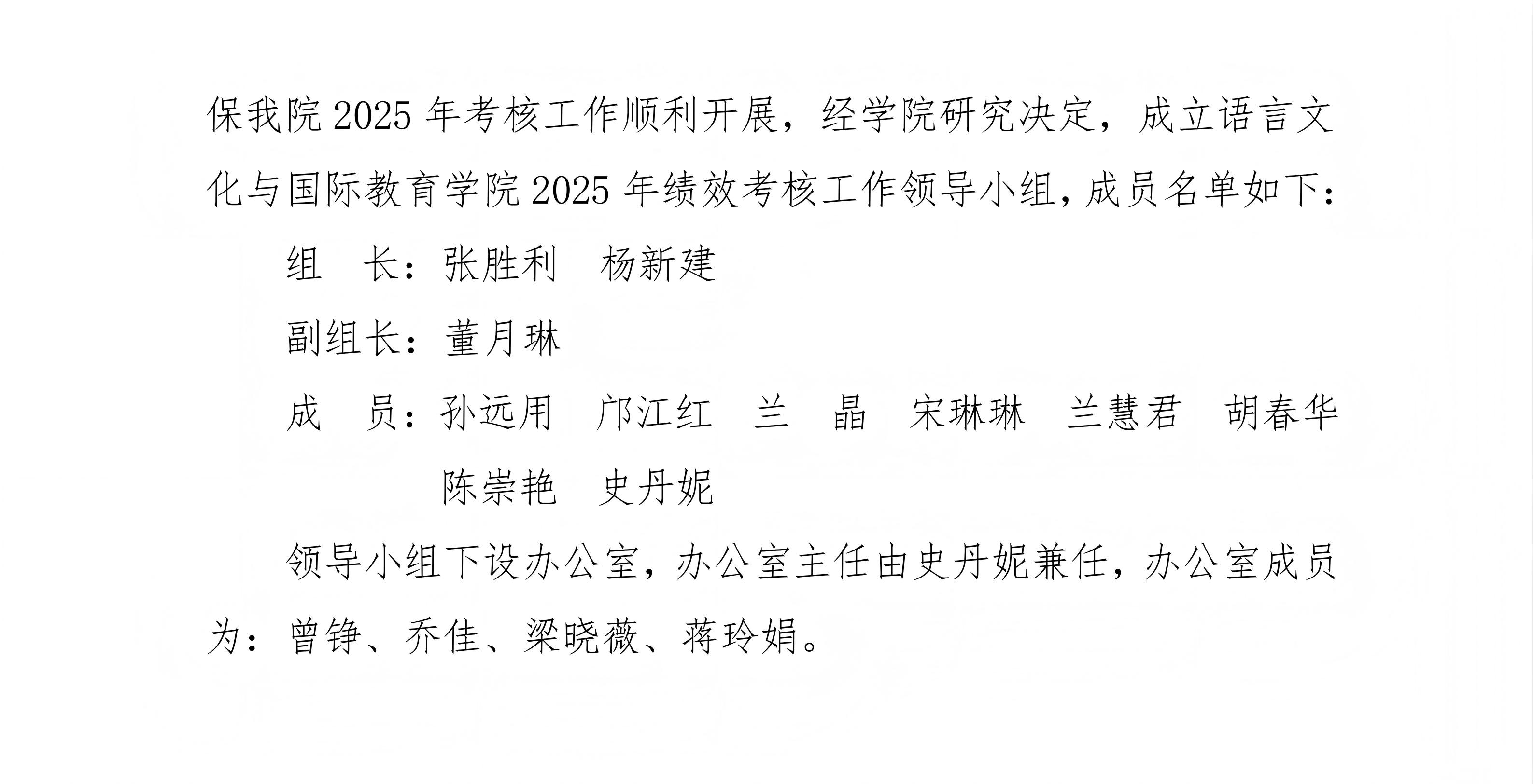 关于成立语言文化与国际教育学院2025年绩效考核工作领导小组的通知