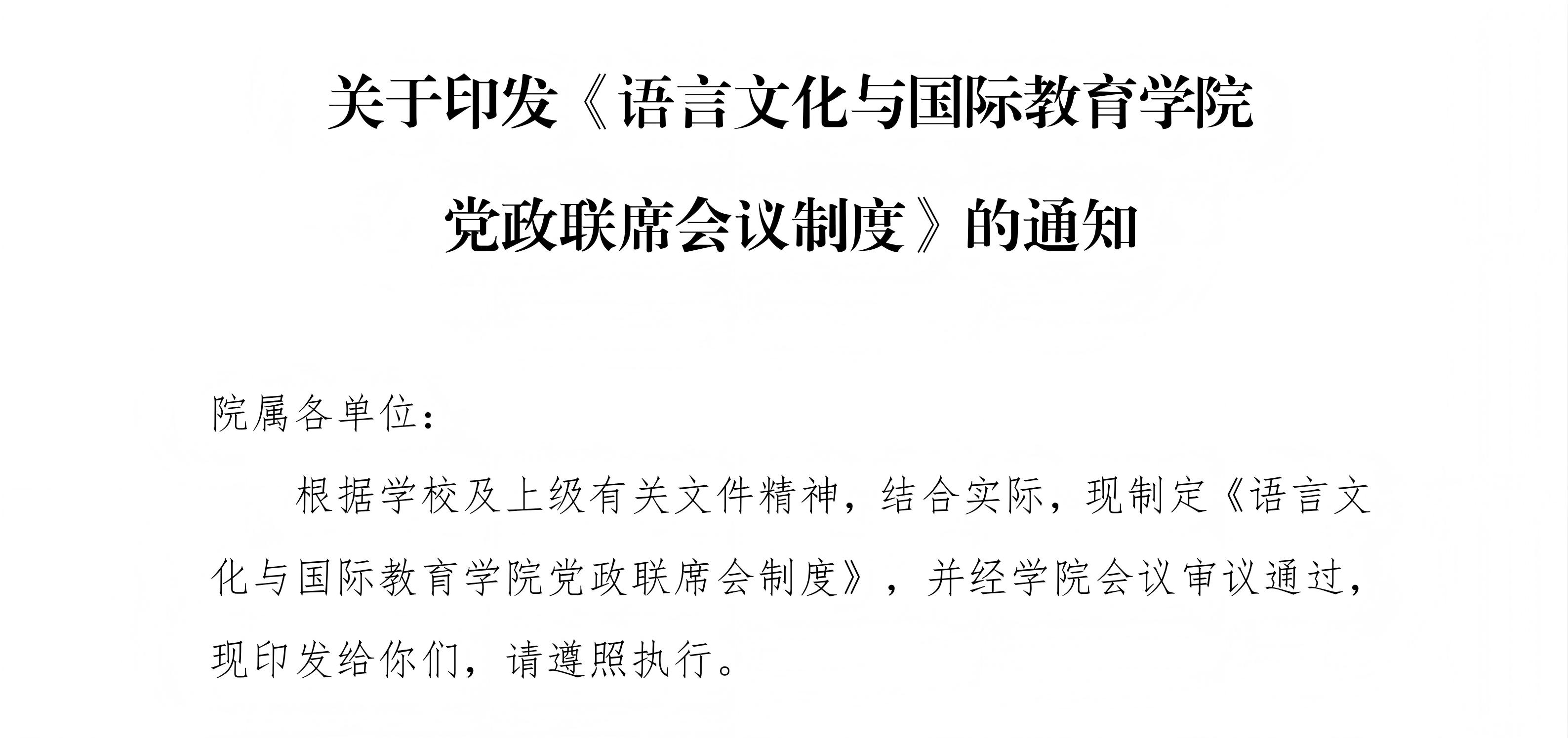 关于印发《语言文化与国际教育学院党政联席会议制度》的通知