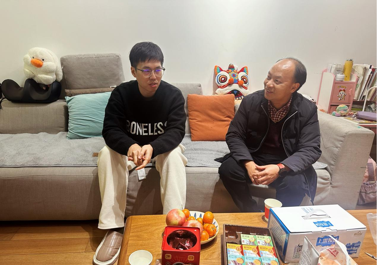 走访过程中,文海燕详细询问两位教师的身体状况、家庭生活及工作开展情况,耐心倾听他们在教学科研、团队建设、个人发展等方面的困惑与诉求,现场回应关切、共话发展。他对陈哲老师深耕人工智能辅助设计领域,带领学生在各类AI设计赛事中屡获佳绩,同时以民盟盟员的责任担当积极参政议政,为学院人才培养模式改革、专业建设发展建言献策的突出贡献给予高度赞誉;对钱沂老师在学院实验室建设与管理工作中履职尽责、务实笃行,以专业素养优化教学实践条件、助力人才培养质量提升的扎实举措表示充分肯定。