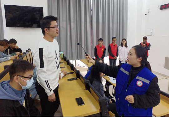 接着,周丽新老师从“中国志愿服务”“柳州市志愿服务发展史”“志愿服务精神”三个方面向同学们讲解志愿服务基础知识。最后,韦婷婷老师通过PPT,从策划的步骤和要素、活动方案的展示以及活动策划写作注意事项等方面阐述了志愿服务活动的策划和开展,结尾还与同学们进行了问答互动,加深了同学们对志愿服务基础知识的理解与记忆。