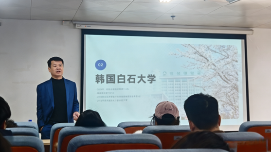 为进一步拓宽学生国际化视野,搭建优质留学深造平台,助力就业工作提质增效,12月26日,学院在科教楼216就业宣讲教室举办国际留学专题讲座。学院高度重视此次活动,党总支书记文海燕及全体辅导员全程参与。本次讲座特邀泰国西那瓦国际大学国际交流处副处长、韩国大邱加图立大学中国事务所副所长、大学生生涯规划指导师刘家亮老师主讲,2022级至2025级50余名有留学意向的学生到场聆听,现场交流氛围热烈浓厚。