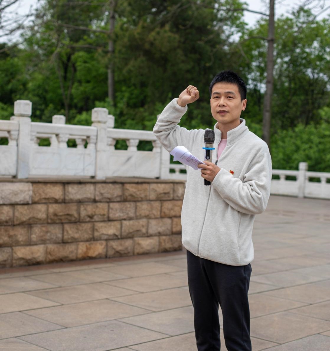 随后,大家前往柳州市西山革命烈士纪念碑开展祭扫活动。在主持人张俊慧老师的引领下,全体人员整齐列队,静默肃立,通过向烈士默哀致敬、向烈士献花、主题演讲、教师代表讲话、重温入党誓词等形式,表达了对革命先烈的无限缅怀与崇高敬意。