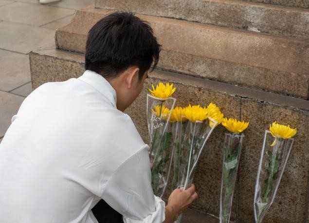 紧接着由学院教职工党支部书记李珊老师在讲话中指出,革命先烈们为了民族独立和人民解放事业所做出的巨大牺牲和贡献,强调了继承先烈遗志、弘扬和践行爱国主义精神的重要性,并带领师生党员重温入党誓词。活动最后,全体师生怀着无比崇敬的心情瞻仰了革命先烈并献上鲜花。