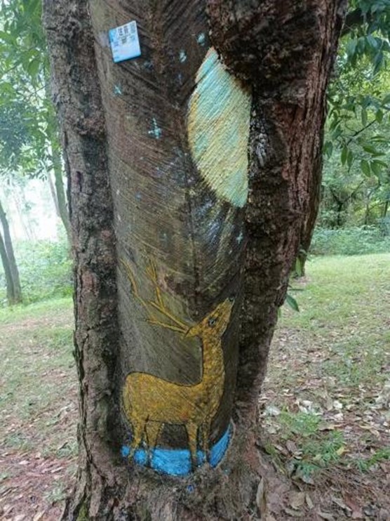 活动中,我院师生与公园负责人深入交流,实地考察公园内生态环境及景观设施,深入了解柳州三门江森林公园历史文化,结合公园的生态环境以及柳州地方民俗特色,用画笔为园内各个设施增添独特的艺术气息。从古朴的腾芳亭,到林间的树洞,再到路边的砖瓦管道,我院师生用彩绘为公园注入生机与活力,从艺术的角度挖掘柳州优质人文资源和自然资源,因地制宜美化景观,改善人居环境,努力绘就壮美龙城画卷,推动柳州旅游产业的发展。